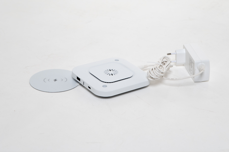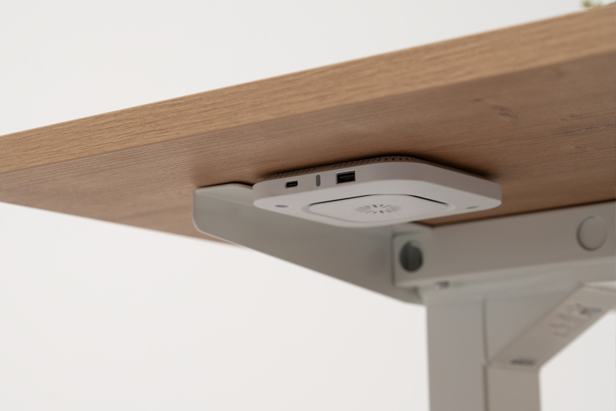 Einfache, unsichtbare Integration unter der Tischplatte – für ein aufgeräumtes Setup.