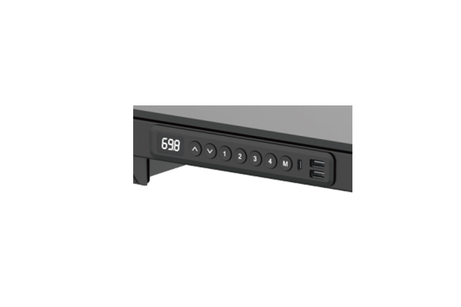 Besondere Extras wie ein integriertes QI-Ladegerät in der Tischplatte, USB-B- und USB-C-Anschlüsse am Steuerungselement sowie eine eingebaute Schublade machen ihn zum smarten Arbeitsplatz für den Alltag. Über das LED-Display mit vier Speicherplätzen können individuelle Höhen präzise eingestellt werden, während der intelligente Kollisionsschutz für Sicherheit sorgt.